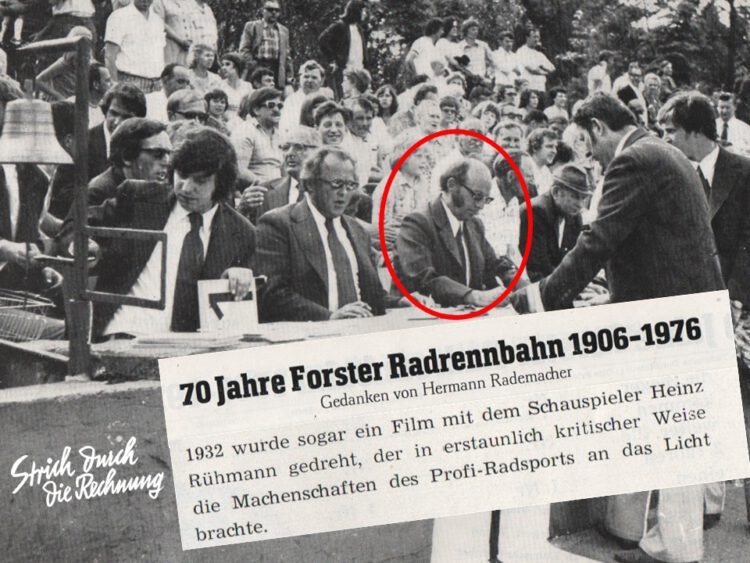 Hermann Rademacher, vielen u.a. als Englisch-Lehrer in Forst bekannt, kam schon früh mit dem Forster Radsport in Verbindung. Sein Vater war Vorsitzender vom RC-Falken und gab häufig die Startschüsse auf der Forster Radrennbahn.